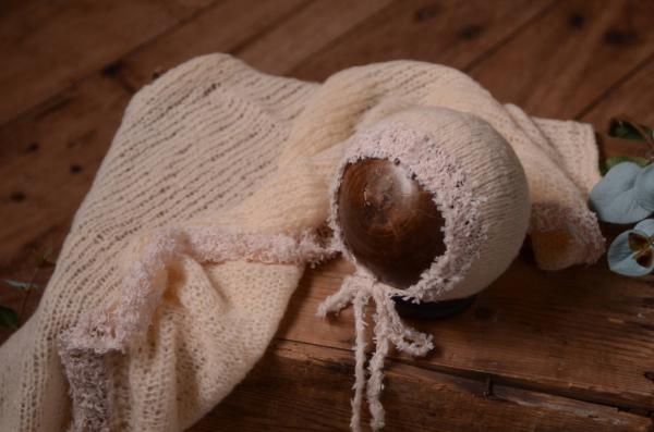 Set de wrap y gorro de angora de fantasía beige