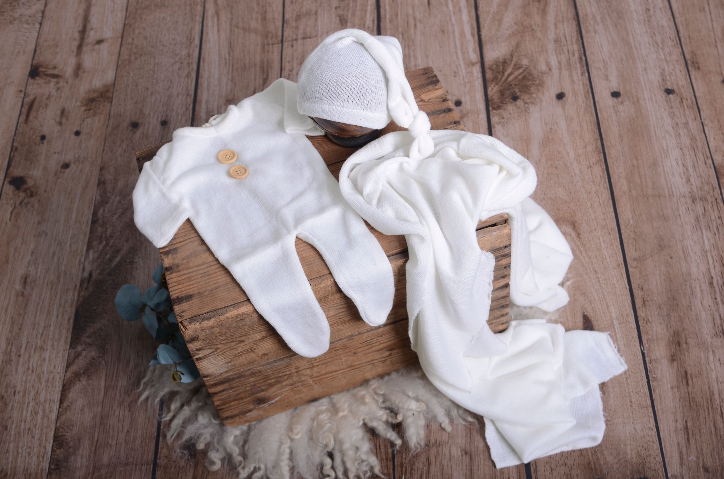 Set de wrap, gorro y pijama de punto blanco