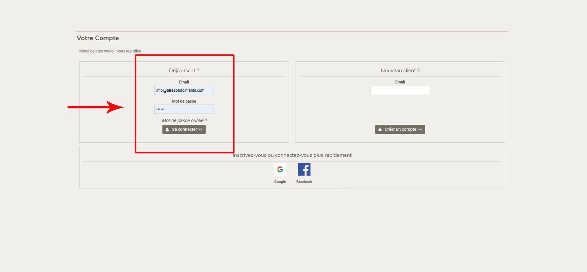 Tout d'abord, vous devez accéder sur votre compte client avec votre e-mail et votre mot de passe. De cette façon, le système vous reconnaîtra et saura combien de points vous avez. Pour y entrer, il vous suffit de cliquer sur le bouton « Connexion » situé sur la partie supérieure, à droite, du site Web.