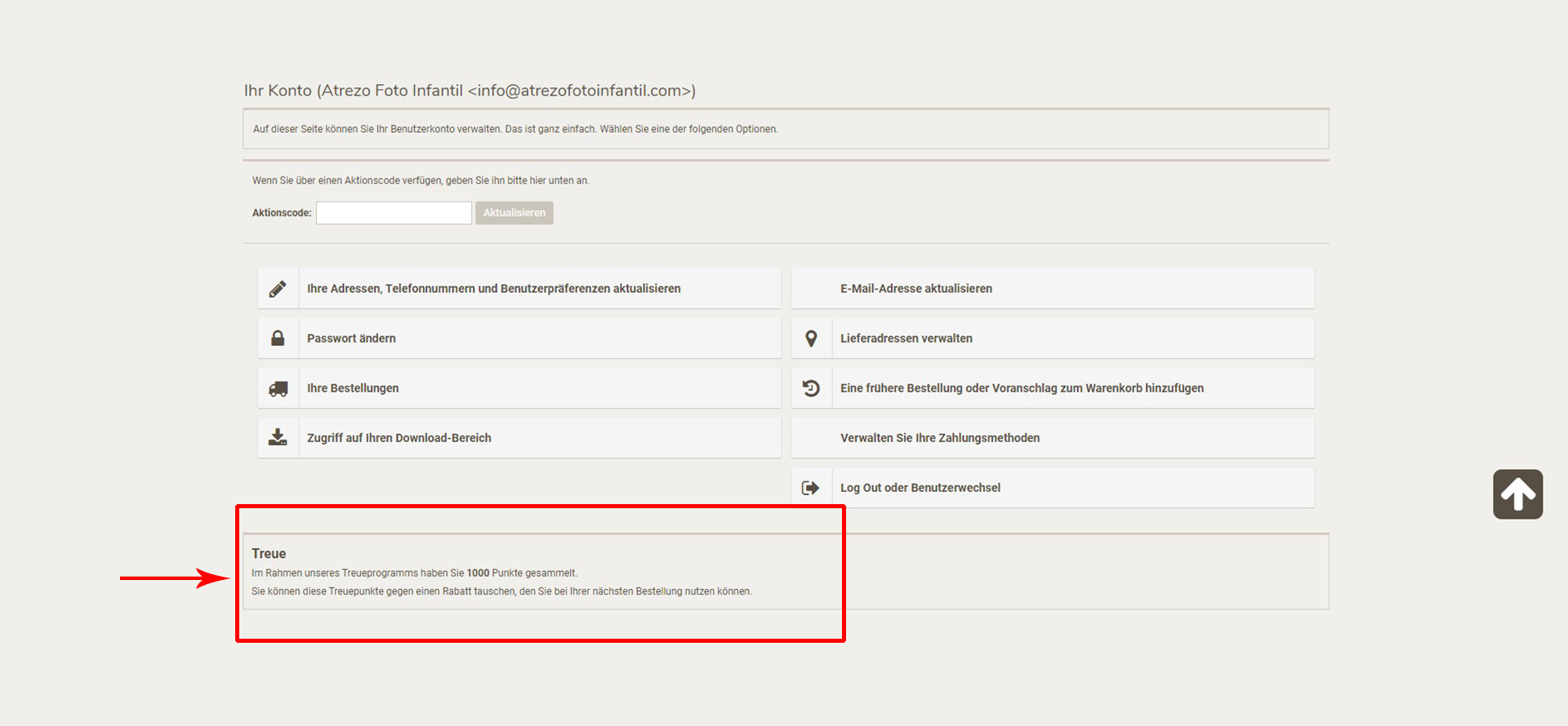 Sobald Sie angemeldet haben, können Sie Ihre gesammelten Punkte für Ihren nächsten Einkauf sehen.